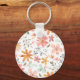 Beautiful White Orange Pink Blossom Flower Pattern Key Ring