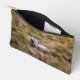Beautiful White Prairie Horse prancing amidst a golden glow of lush green and white rushes.