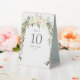 Beautiful, white rose floral wedding number cards for tables. Bouquet watercolor floral at top features vanilla white roses with hints of yellow, pink and peach including the greenery that drapes each side. Templates provided for you.