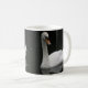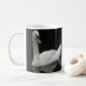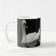 This coffee mug features a photograph of a beautiful white swan. The swan is a male mute swan, you can tell it is male by the black bump on the beak. The swan is gliding gracefully across the water on a calm lake. The design is shown here on a basic white coffee mug, but is also available on lots of other styles and colours of mugs.