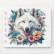 Beautiful White Wolf with Flowers Mouse Pad