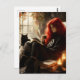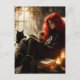 A red haired witch with her black cat enjoy a book and tea AI generated art