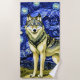 Beautiful Wolf in the Starry Night Beach Towel
