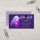 A beautiful woman with long hair on a purple background is featured on this business card for a hair salon. Beautiful, eye-catching, and professional.