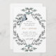 Beautiful and elegant, botanical watercolor wreath with foliage and flowers wedding invitation. This lovely design features lovely calligraphy and dusty blue and grey elements.