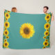 Beautiful Yellow Sunflowers on Teal Fleece Blanket