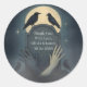 Seal your envelopes, favours, or treat bags with moonlit magic using these gothic wedding stickers. Featuring a graveyard motif with a full moon, ravens, and intertwined skeletal hands, they add the perfect chilling charm to your spooky celebration. Ideal for Halloween or gothic-themed weddings.