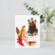 This postcard is from a vintage illustration of the fairy tale Beauty and the Beast. The beauty is at the dinner table with the beast, who markedly resembles a bear.