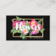 A beautiful and chic design motif featuring a colourful floral bouquet peaks out from behind the word "Flowers". Framed in a faux metallic gold foil box and personalised with your name underneath, this is the perfect business card for a florist or floral designer. The double-sided design allows ample room for your contact info on the backside. Art and design © 1201AM Design Studio | www.1201am.com
