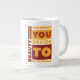 Some days, a regular size cup of joe just won’t do. When you need that extra jolt of caffeine, reach for your extra-large coffee mug from Zazzle. It will accommodate a full 20-ounce Venti pour. Perfect for soup, cereal, ice cream, or chilli too! This giant mug features a C-shaped handle for comfortable sipping.