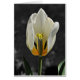 Inside inscription (may be modified or deleted): "Sometimes petals must fall To reveal the beauty within." Fallen petals reveal the centre stigma, radiating stamen, and deep yellow core of this beautiful white tulip.