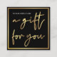 Chic Gift Certificate in black and gold with space for your logo, social media icons and your company details. Perfect to use as personalised beauty salon or spa gift certificate for your lash, brow or nail bar. The faux gold effects and modern script font that writes 'a gift for you' add a glam feel to this business gift voucher template, perfect to impress your clients.