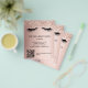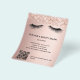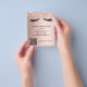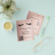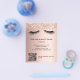 A rose gold gradient background, with glitter sparkles and eye lashes. On front: The text: Price list. Personalise and add your name and address. Create your own QR code by adding your url to your website or to your social media account.
