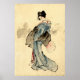 Woman, full-length portrait, standing, facing left, holding fan in right hand, wearing kimono with check design. From an original 1840 Japanese ink drawing by an Katsushika Hokusai. All Rights Reserved © 2012 padre art