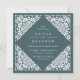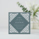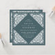 Elegant vintage wedding invitations in rich forest green feature an ornately detailed deco border that evokes the look of cut paper in a papel picado style. Square shape.