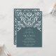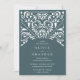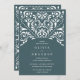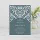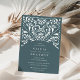 Elegant vintage wedding invitations in rich spruce green feature ornate detailing that evokes the look of cut paper in a papel picado style.