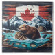 Beaver Building Dam in Canadian Wilderness Scene Ceramic Tile