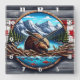 Beaver Building Lodge by Mountain Lake in Canada Square Wall Clock