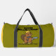 This fun olive green duffle bag features a cartoon beaver wearing a hard hat and holding a drill and blueprints, with the text "BEAVER DRILLING COMPANY" and the humourous slogan "WE CAN DRILL ANY HOLE". It’s a playful and unique design perfect for anyone in the construction, drilling, or engineering fields, or for those who simply appreciate clever animal humour. Edit colour of the bag caps and body in the Design tool to your favored colours.