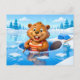 Beaver Ice Bathing in a Striped Swimsuit Postcard