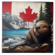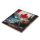 Beaver in Canadian Wilderness With Flag Background Ceramic Tile