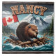 Beaver on Raft With Flag in Scenic View Ceramic Tile