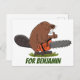 This happy beaver is ready to build his lodge with a chainsaw. Drawn in fun cartoon illustration style! Beaver greetings!
