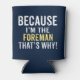 Because I'm the Foreman, That's Why! WordArt typography in uppercase distressed font lettering in white and yellow.