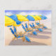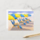Lonely blue and yellow beach umbrellas and wooden chairs beckoning their first visitors of the day! :: Original Watercolor by Barbara Bayer