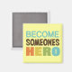 Inspirational message reads "Become Someones Hero" on T-shirts, bags, magnets, buttons, cards, stickers, key chains, pillows, water bottles, and more. Being the best person you can to those who look up to you, your children, your students, your younger siblings, or perhaps striving to do your best and be a hero in the eyes of someone you don't even know!