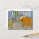 A fine art postcard with the post-impressionist painting, Bedroom in Arles, (1888), by the Dutch artist Vincent van Gogh (1853-1890). This painting depicts his bedroom in the house he shared with Gauguin in Arles, France.