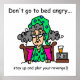 Bedtime Humour T-shirts, mugs, magnets, cards, stickers, bags, mousepads, pillows, ornaments, keepsake boxes, and more with Stella's thoughts on bedtime. She proclaims you should not go to bed angry but stay up and plot your revenge!