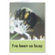Beautiful close up back yard nature photography, in stunning detail, of a gorgeous bumble bee as it gathers pollen and nectar from delightful white garlic chive blossoms in the foreground. A fresh summery decoration that adds a lovely touch to your locker, cubical wall or fridge.