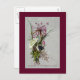 A Victorian Christmas card from the 1800's with pink allium, ferns and a bee resting on Queen Anne's Lace.