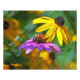A purple coneflower and a blackeyed susan serve up a meal to a honey bee