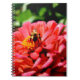 Beautiful Summer Day ! Pretty orange coral zinnia with little bumblebee- photo by H Cooper
