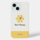 A phone case with an illustration of a bee on honeycombs and customisable brown texts: perfect to make a gift to a beekeeper, a bee lover or a girlfriend who loves nature.