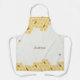 An apron with a pattern of a bee on honeycombs on top and bottom and customisable brown forename or text: perfect to make a gift to a beekeeper, a bee lover or a girlfriend who loves nature.
