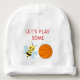 This hat features a happy honey bee and basketball design. Keep your little one's head warm with this cute baby hat.