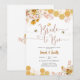 Celebrate the bride-to-be with this charming bee and honeycomb themed bridal shower invitation. Featuring elegant gold honeycomb accents, delicate pink florals, and playful bee illustrations, this design blends sophistication with whimsy. Perfect for garden parties or rustic celebrations, it sets the tone for a sweet and memorable event. Customise with your details to create a unique keepsake that guests will adore.