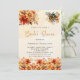 A stylish white and golden watercolored background. Decorated with a bee and yellow and orange flowers.. With the text: Bridal Shower written with a modern hand lettered style script. Personalise and add the name of the bride to bee. Golden and black letters.