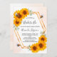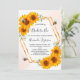 A stylish white and rose gold watercolored background. A faux gold geometric frame and bumble bees. With the text: Bride to Bee and the name of the bride on front written with a modern hand lettered style script. Black letters.