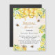 A stylish white and golden watercolored background. Decorated with bumble bees, melting honey and honeycomb with yellow florals, flowers and a honey jar. With the text: Bridal Shower written with a modern hand lettered style script. Personalise and add the name of the bride to bee. Golden and black letters.