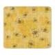 A cute modern bee pattern with little honey bees buzzing around a bright cheerful yellow honey comb.
