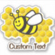 Yellow and black flying smiling honey bee cartoon on beehive background. Custom text.