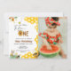 .This first birthday party is decorated with adorable yellow sunflowers and yellow bustling bees. Hand-drawn floral first birthday celebration invitations with bees.