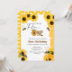 .This first birthday party is decorated with adorable yellow sunflowers and yellow bustling bees. Hand-drawn floral first birthday celebration invitations with bees.