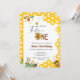 .This first birthday party is decorated with adorable yellow sunflowers and yellow bustling bees. Hand-drawn floral first birthday celebration invitations with bees.
