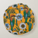 Bee-eaters, blue butterflies and daisies on orange round cushion