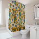 Bee-eaters, blue butterflies and daisies on orange shower curtain